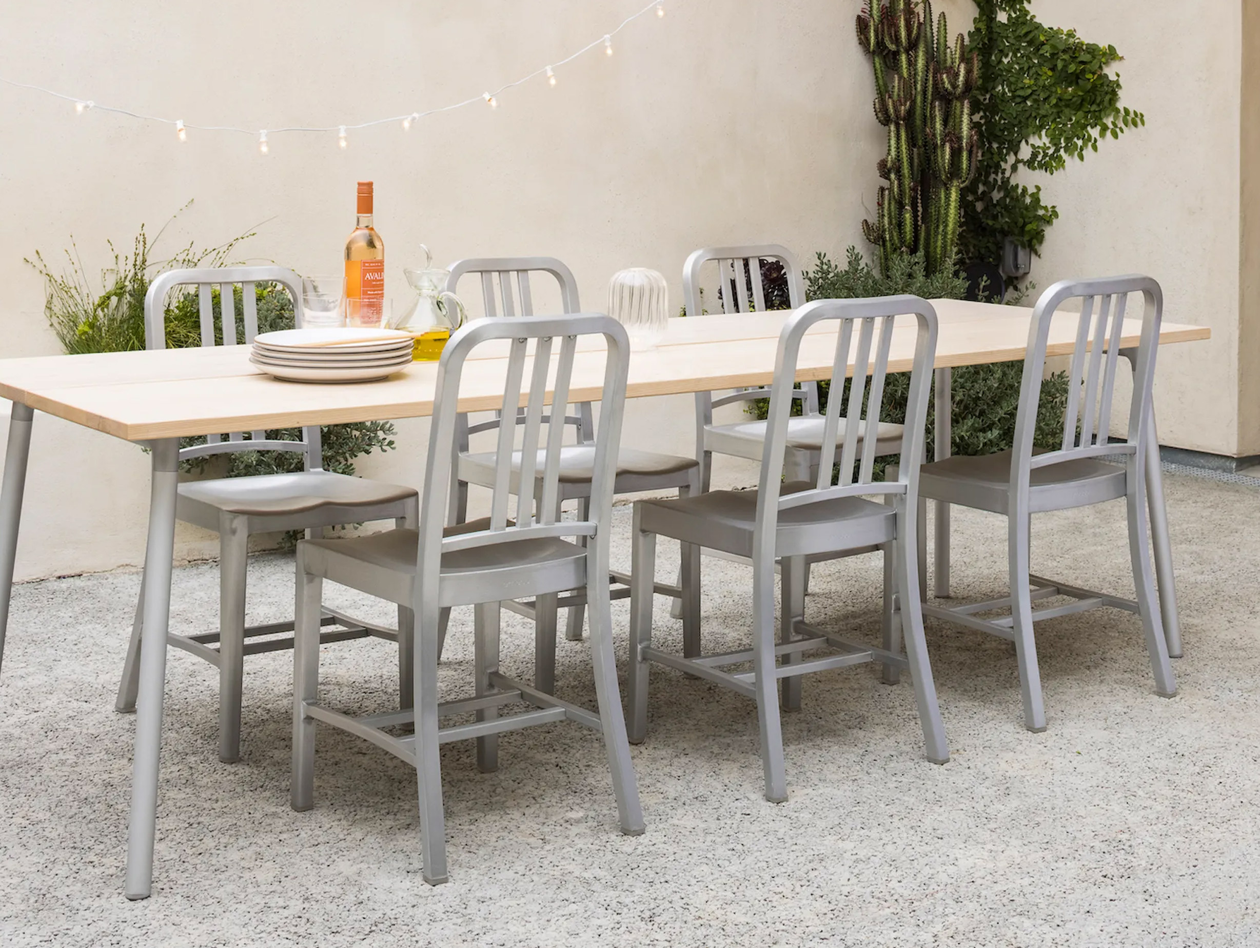 Constructed from recycled aluminium, the material is naturally fireproof, non-corrosive and can be used indoors and outdoors. Suited to both residential and contract environments, the Navy Chair 1006 is available in a Brushed Aluminium or Polished Aluminium finish.