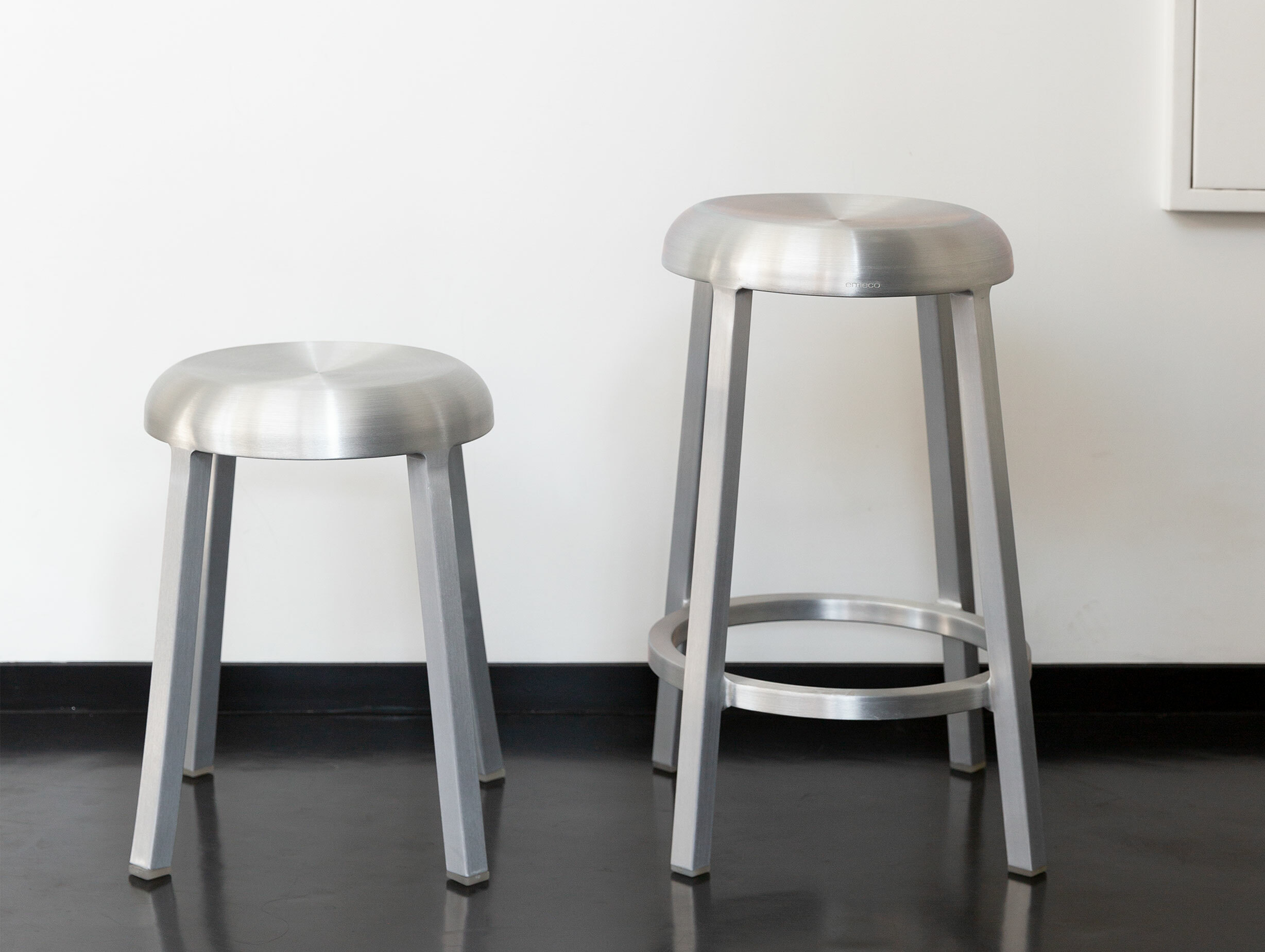 Naoto Fukasawa's Za for Emeco is a family of stools characterised by its simple and timeless design. Handcrafted from recycled aluminium, the Za Counter Stool can be used indoors and outdoors.