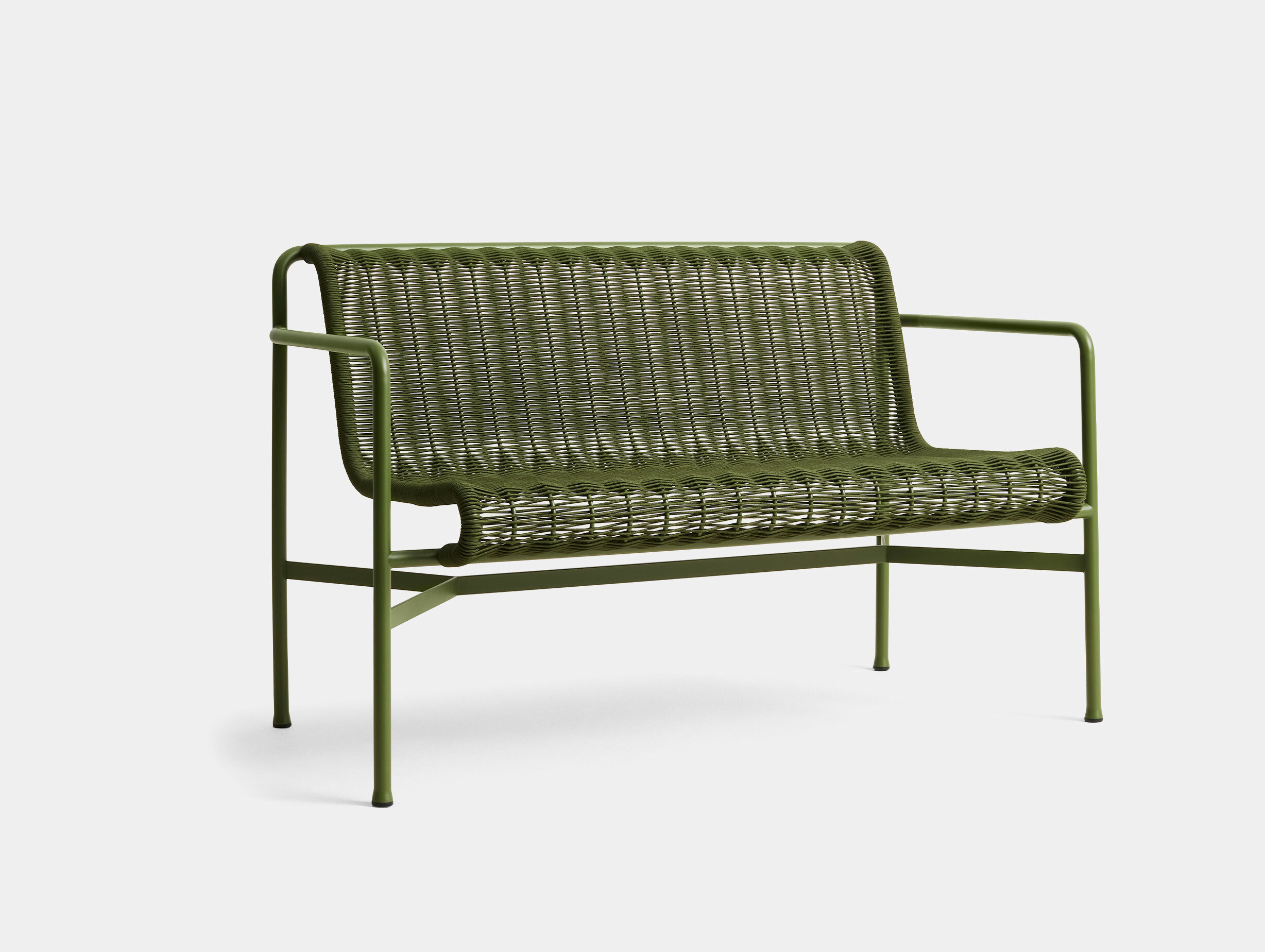 The HAY Palissade Cord Dining Bench is a garden bench that is sturdy yet refined; its visual transparency allows it to integrate seamlessly into its surroundings. Practical as well as visually appealing, the bench’s handwoven cord detail adds a touch of craftsmanship to its sleek powder-coated steel frame.