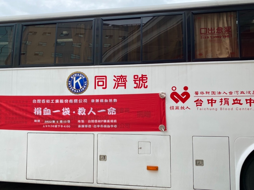 由於新冠疫情肆虐,全臺確診人數不斷攀升,醫療量能吃緊,目前正值血庫缺血期,台灣百和響應「捐血一袋,救人一命」,與台中捐血中心合作,邀請捐血車至台灣百和總部,由台灣百和主管帶領員工、眷屬及廠商等積極挽袖加入捐血行列。