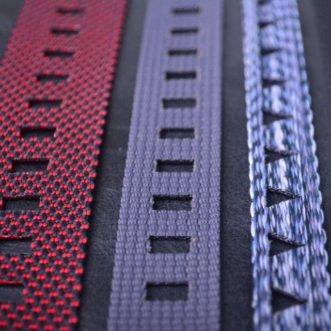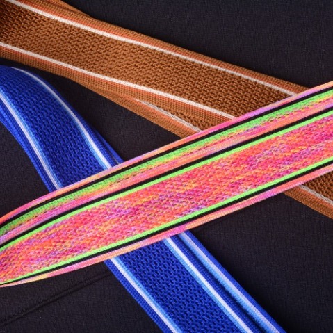 - 可依照需求製作柔軟或紮實手感織帶,適合鞋面、成衣、運動服、內著、袋包配件等產品使用。