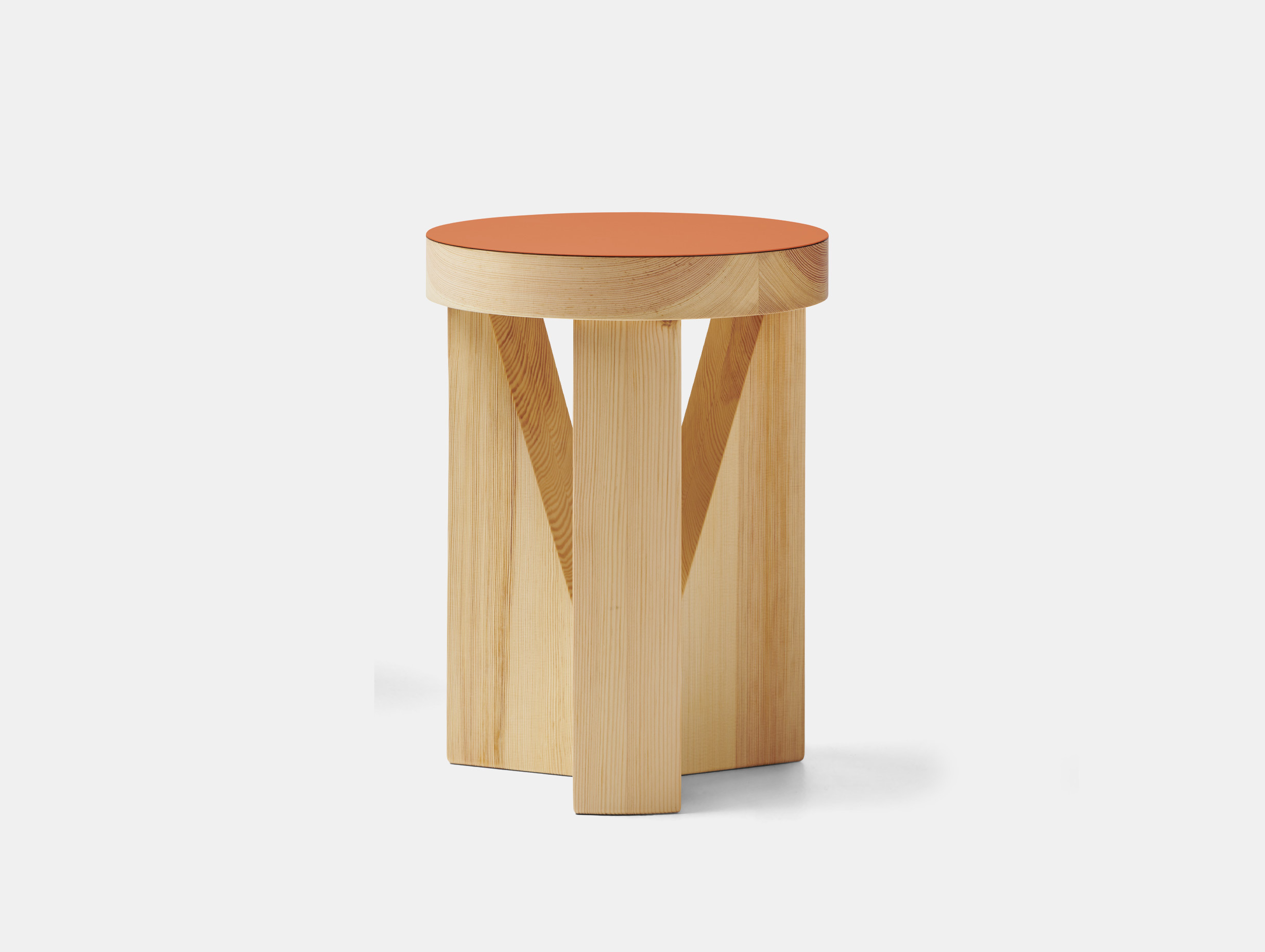 Combining Grcic's background in wood working and Mattiazzi's expert craftsmanship, the wooden stool/table reveals complex wood joinery and fine finishing. Crafted from solid Pine, the Cugino Soft is available with a Forbo Linoleum Desktop seat in a choice of Burgundy, Pistachio, Orange Blast and Powder.